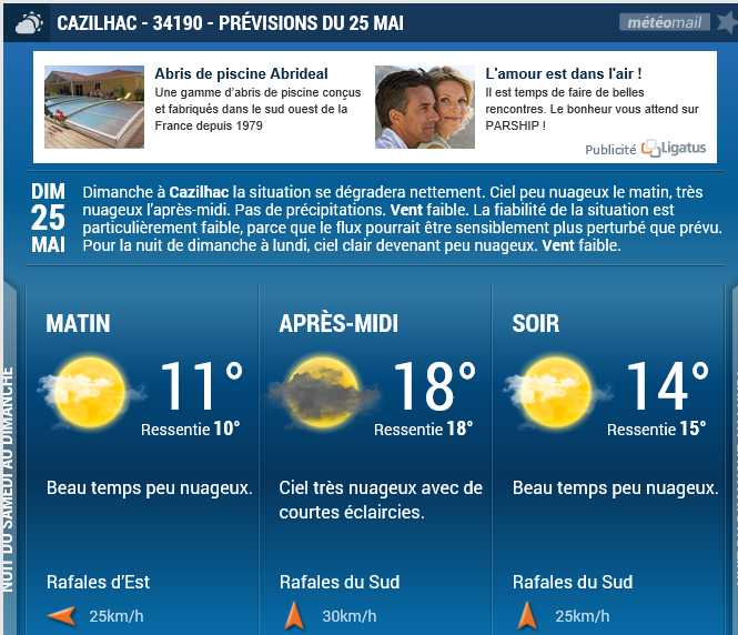 Dernière prévision météo pour le 25 mai : Ouvrir